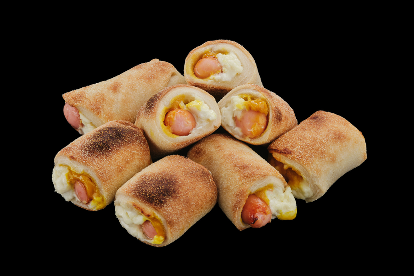 Роллс з сосискою, сиром філадельфія та американською гірчицею.