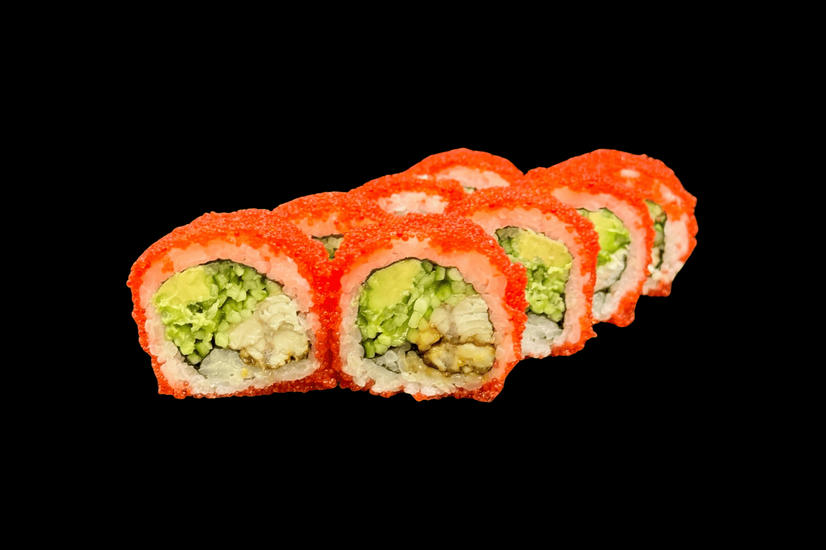 Рис, Японський майонез, Вугор, Авокадо, Огірок, Ікра тобіко