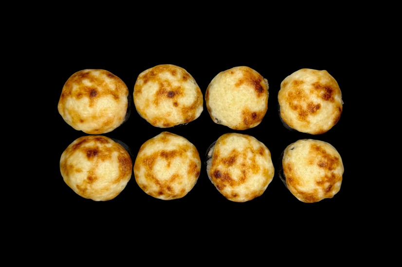 Рис, Крем сир, Норі, Копчений лосось, Огірок, Ікра тобіко, Запечений сир